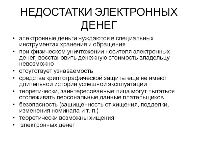 Слайд 25НЕДОСТАТКИ ЭЛЕКТРОННЫХ ДЕНЕГ