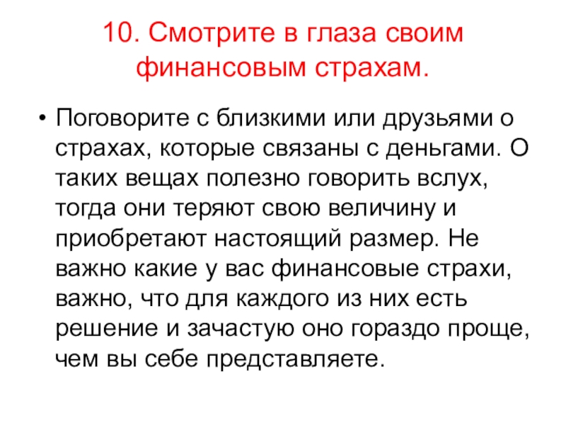 о страхах, которые связаны с деньгами. О таких вещах полезно говорить вслух, тогда они теряют свою величину и приобретают настоящий размер. Не важно какие у вас финансовые страхи, важно, что для каждого из них есть решение и зачастую оно гораздо проще, чем вы себе представляете.