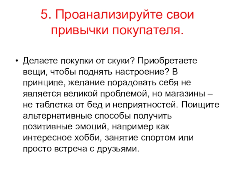 Слайд 65. Проанализируйте свои привычки покупателя.