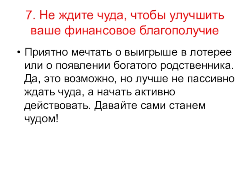 7. Не ждите чуда, чтобы улучшить ваше финансовое благополучие