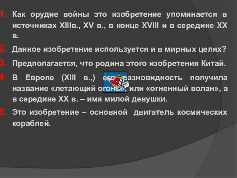 Слайд 20Как орудие войны это изобретение упоминается в источниках XIIIв., XV в.,