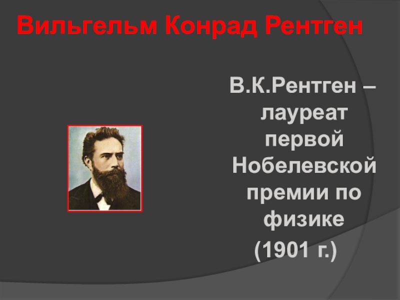 В.К.Рентген – лауреат первой Нобелевской премии по