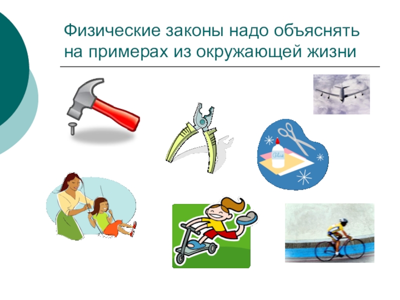 Слайд 3Физические законы надо объяснять на примерах из окружающей жизни