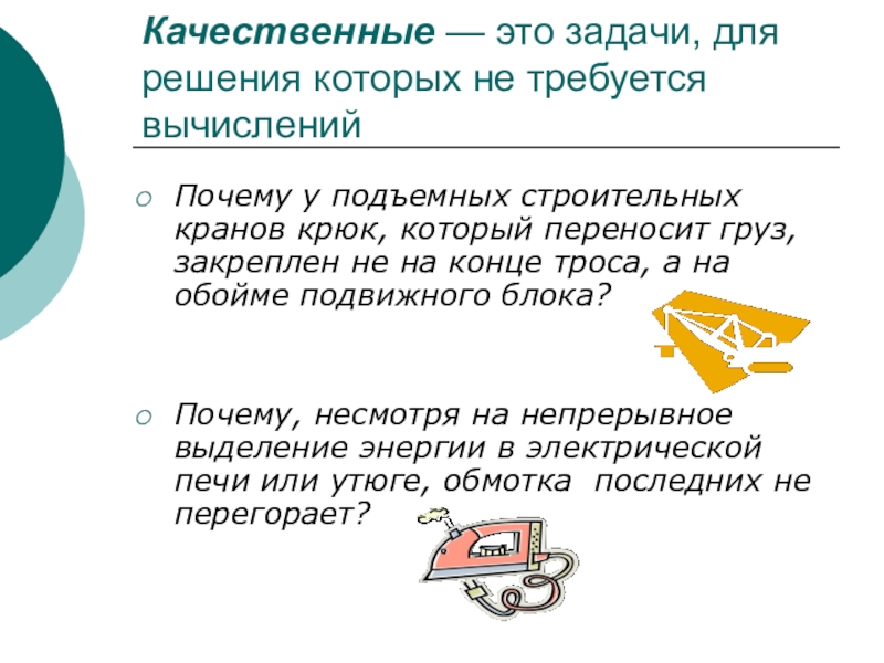 Качественные — это задачи, для решения которых не требуется вычислений Почему у подъемных строительных кранов крюк, который