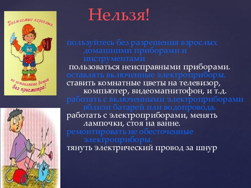 Выходя из дома или комнаты, выключай телевизор, утюг и другие электроприборы.