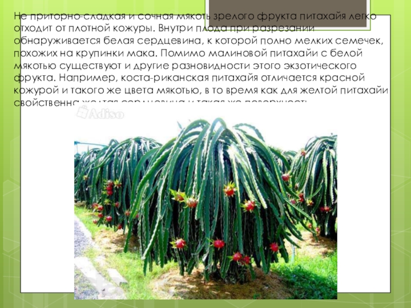 Слайд 44Не приторно-сладкая и сочная мякоть зрелого фрукта питахайя легко отходит от