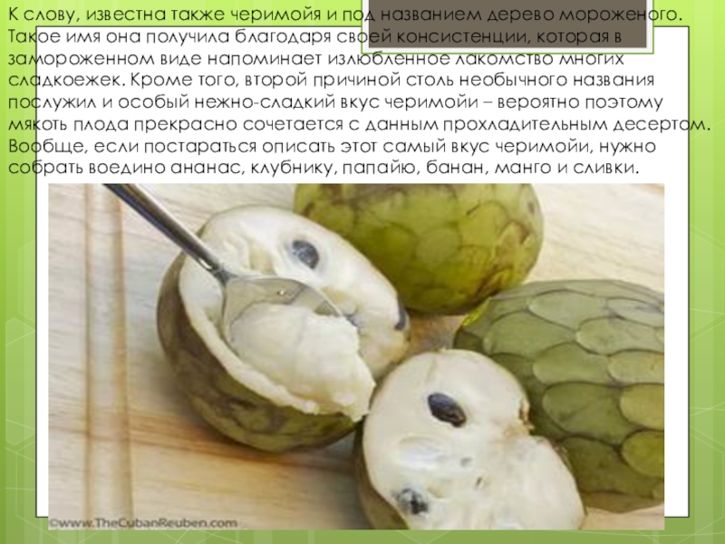 Слайд 42К слову, известна также черимойя и под названием дерево мороженого. Такое