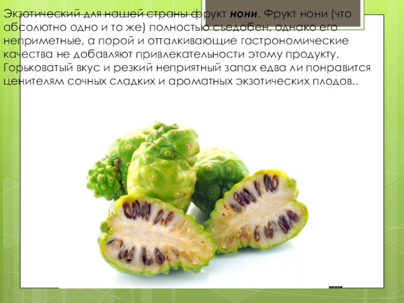 Слайд 27Экзотический для нашей страны фрукт нони. Фрукт нони (что абсолютно одно