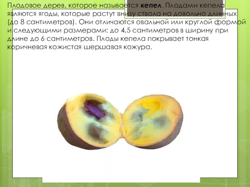 Слайд 35Плодовое дерев, которое называется кепел. Плодами кепела являются ягоды, которые растут