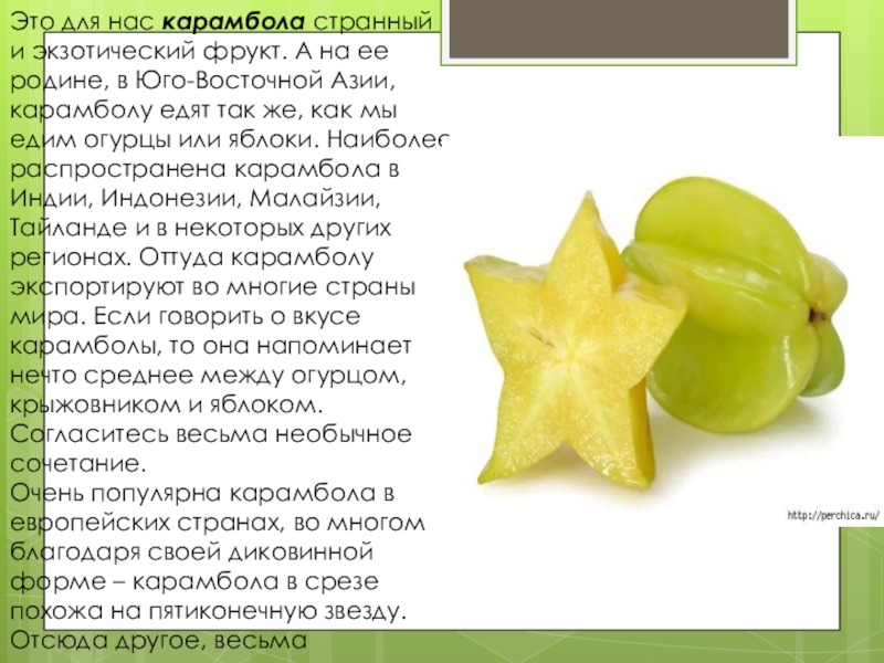 Слайд 15Это для нас карамбола странный и экзотический фрукт. А на ее
