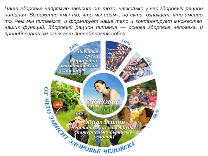 Слайд 2Наше здоровье напрямую зависит от того, насколько у нас здоровый рацион