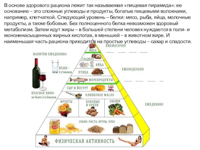 Слайд 3В основе здорового рациона лежит так называемая «пищевая пирамида»: ее основание