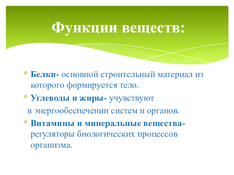 Функции веществ: