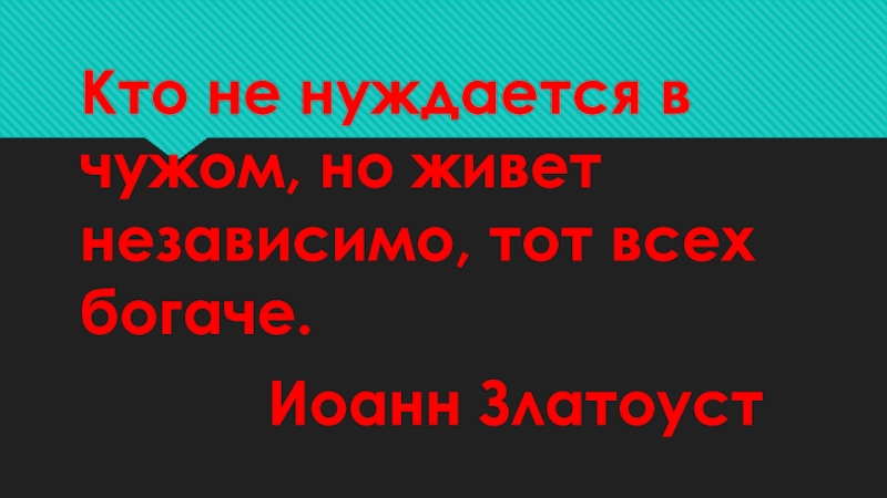 Слайд 10Кто не нуждается в чужом, но живет независимо, тот всех богаче.