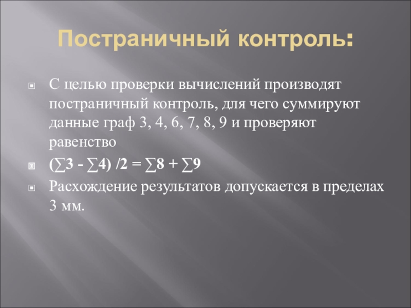 С целью проверки вычислений производят постраничный контроль, для чего суммируют