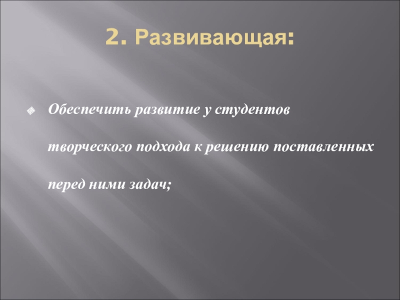 Обеспечить развитие у студентов творческого подхода к решению поставленных