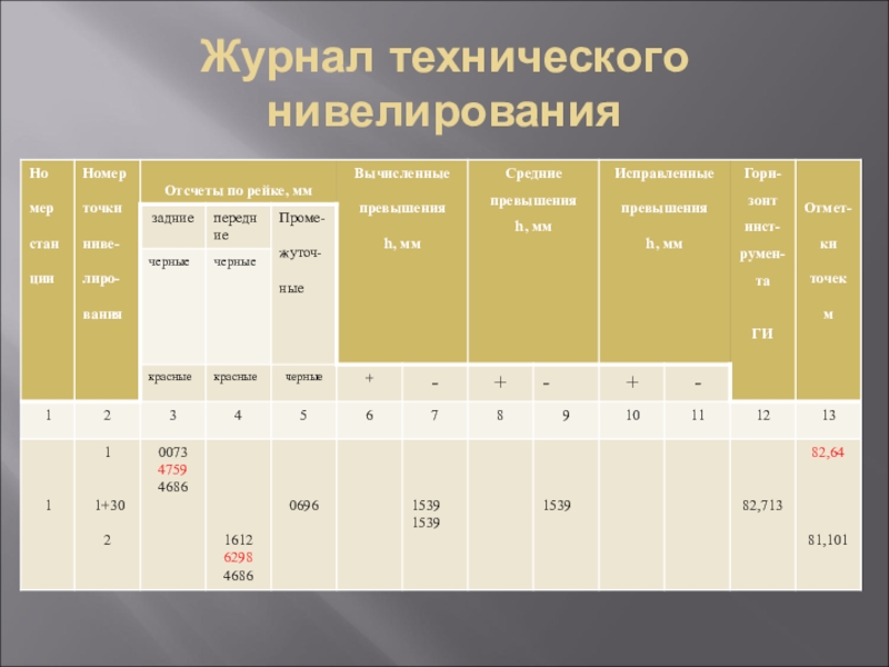 Слайд 29Увязка нивелирного хода. Вычисление отметок точек.