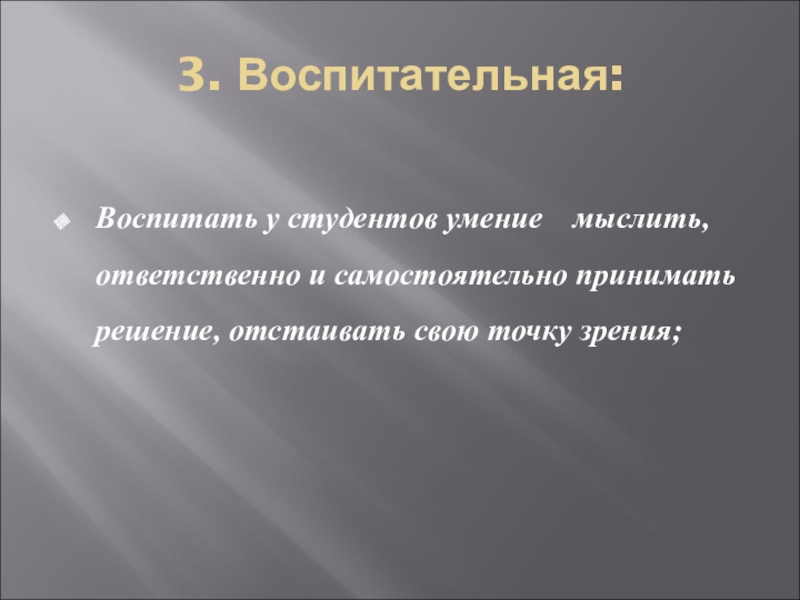 Воспитать у студентов умение мыслить, ответственно и самостоятельно принимать