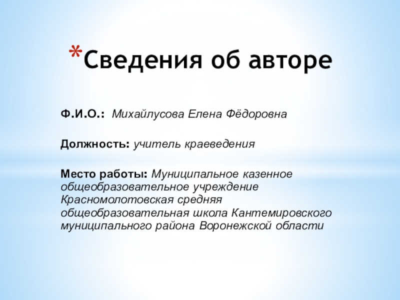 Ф.И.О.: Михайлусова Елена Фёдоровна