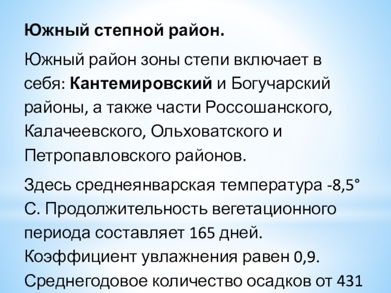Богучарский районы, а также части Россошанского, Калачеевского, Ольховатского и Петропавловского районов.