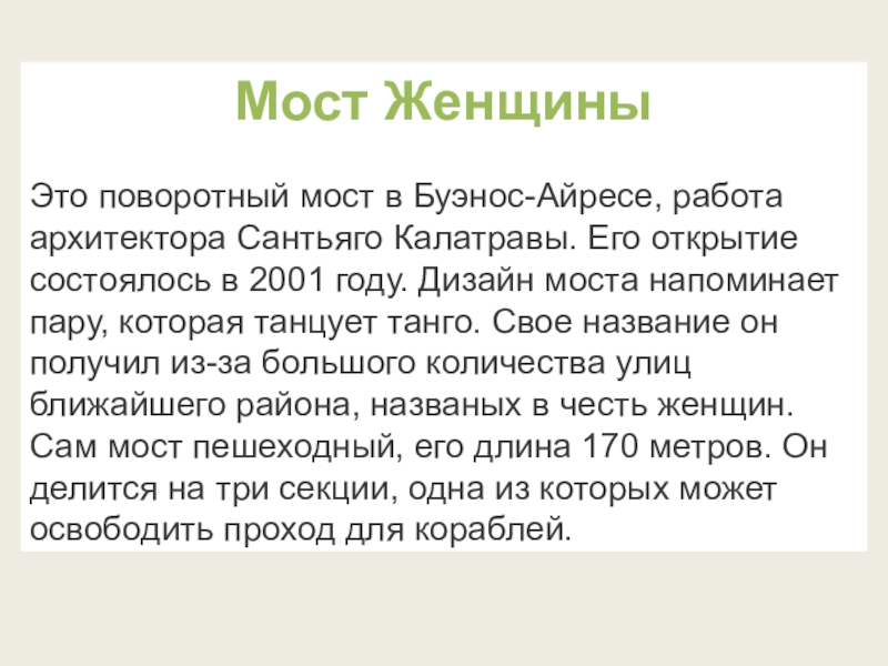 Это поворотный мост в Буэнос-Айресе, работа архитектора Сантьяго Калатравы. Его