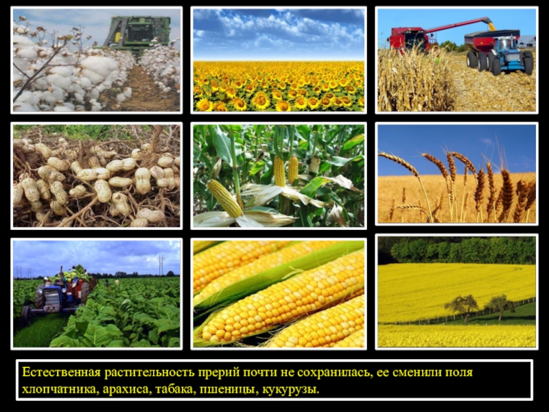 Слайд 20Естественная растительность прерий почти не сохранилась, ее сменили поля хлопчатника, арахиса,
