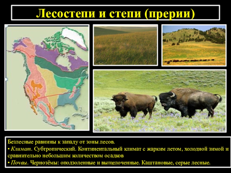Слайд 19• Растительность. Обширные безлесные пространства покрыты травянистой растительностью- высокие многолетние злаки: здесь
