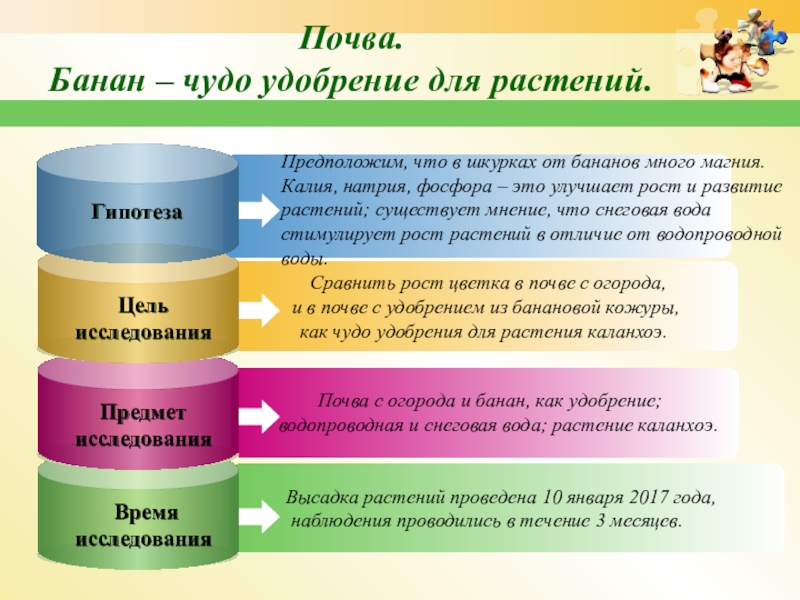 Предположим, что в шкурках от бананов много магния. Калия, натрия, фосфора – это улучшает рост и развитие растений; существует мнение, что снеговая вода стимулирует рост растений в отличие от водопроводной воды.