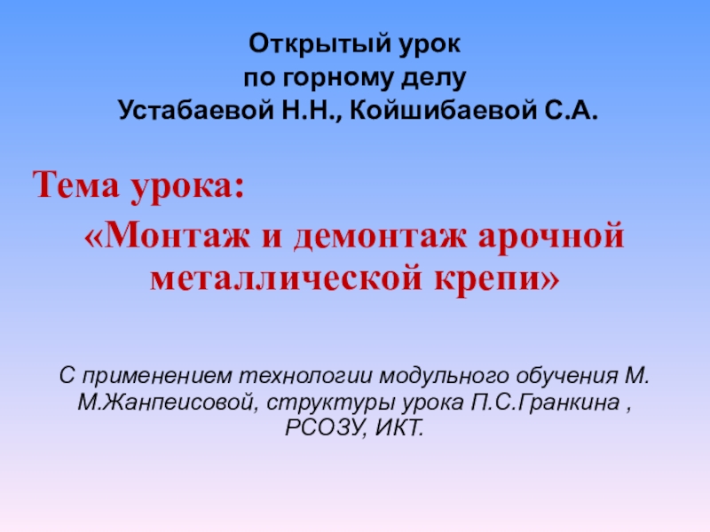 С применением технологии модульного обучения М.М.Жанпеисовой, структуры урока П.С.Гранкина , РСОЗУ, ИКТ.
