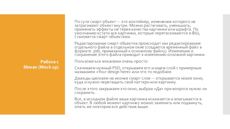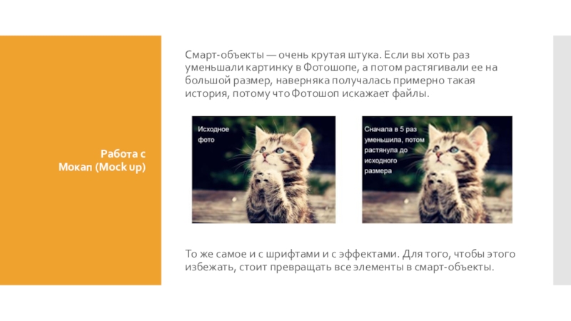не затрагивают объект внутри. Можно растягивать, уменьшать, применять эффекты не теряя качества картинки или шрифта. По умолчанию кстати все картинки, которые перетаскиваются в ФШ, становятся смарт-объектами.