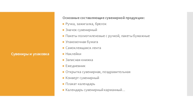 Основные составляющие сувенирной продукции: