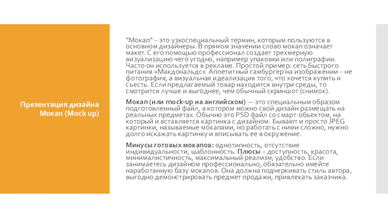 "Мокап" – это узкоспециальный термин, которым пользуются в