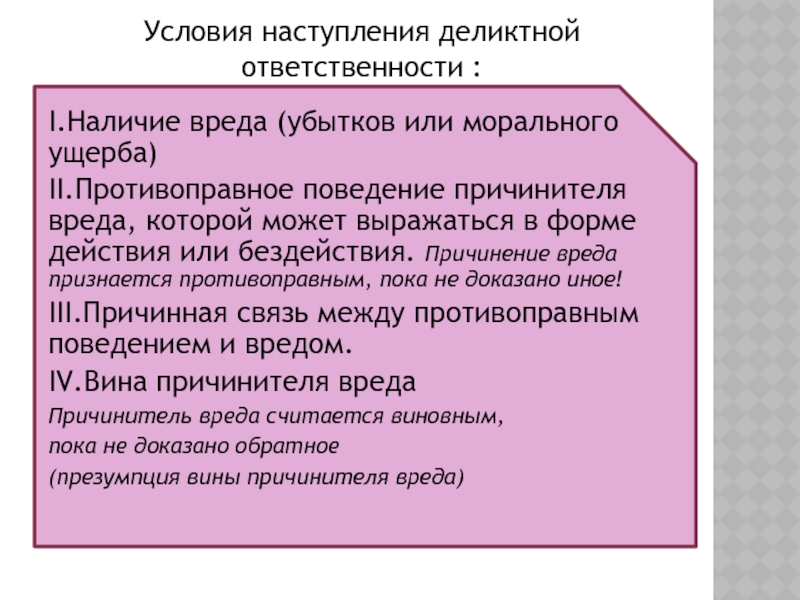 Условия наступления деликтной ответственности :