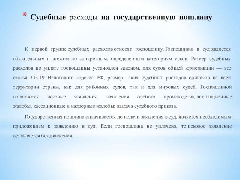 Слайд 7Судебные расходы на государственную пошлину