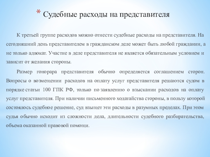 Слайд 9Судебные расходы на представителя