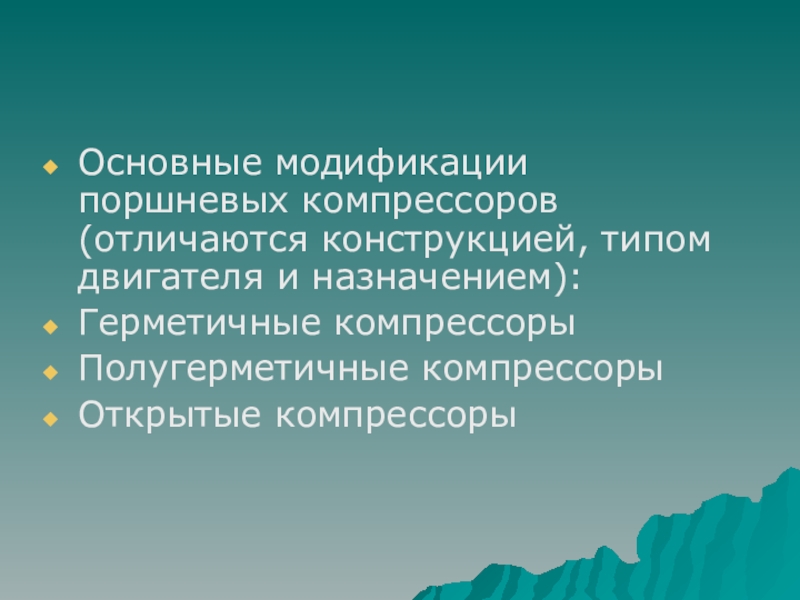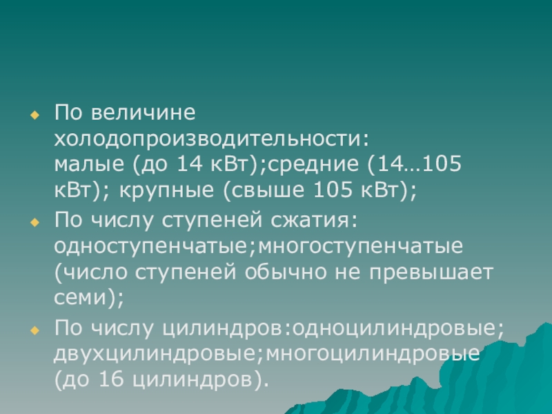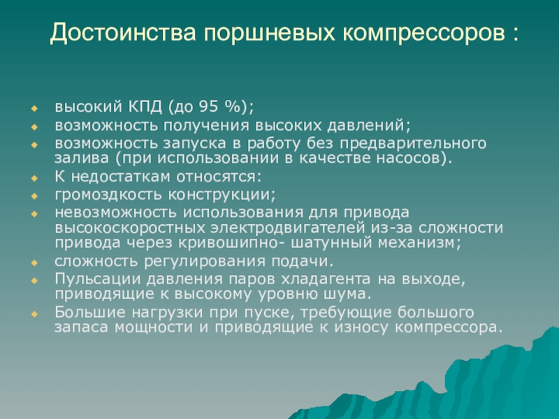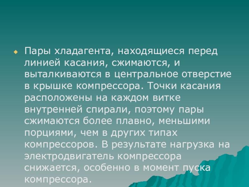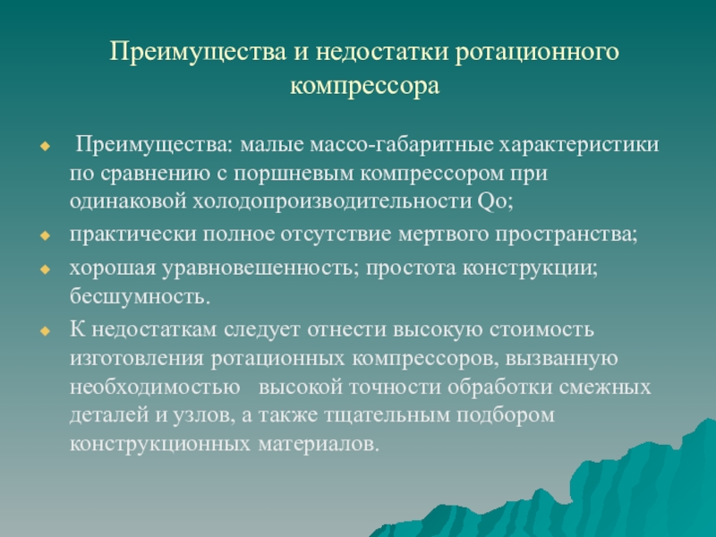 Преимущества: малые массо-габаритные характеристики по сравнению с поршневым компрессором при одинаковой холодопроизводительности Qo;