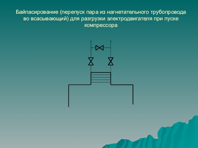 При наличии у компрессора байпаса, проверив разность давлений масла, открывают нагнетательный вентиль, закрывают байпас и, наблюдая за манометром всасывания, приоткрывают всасывающий вентиль компрессора.