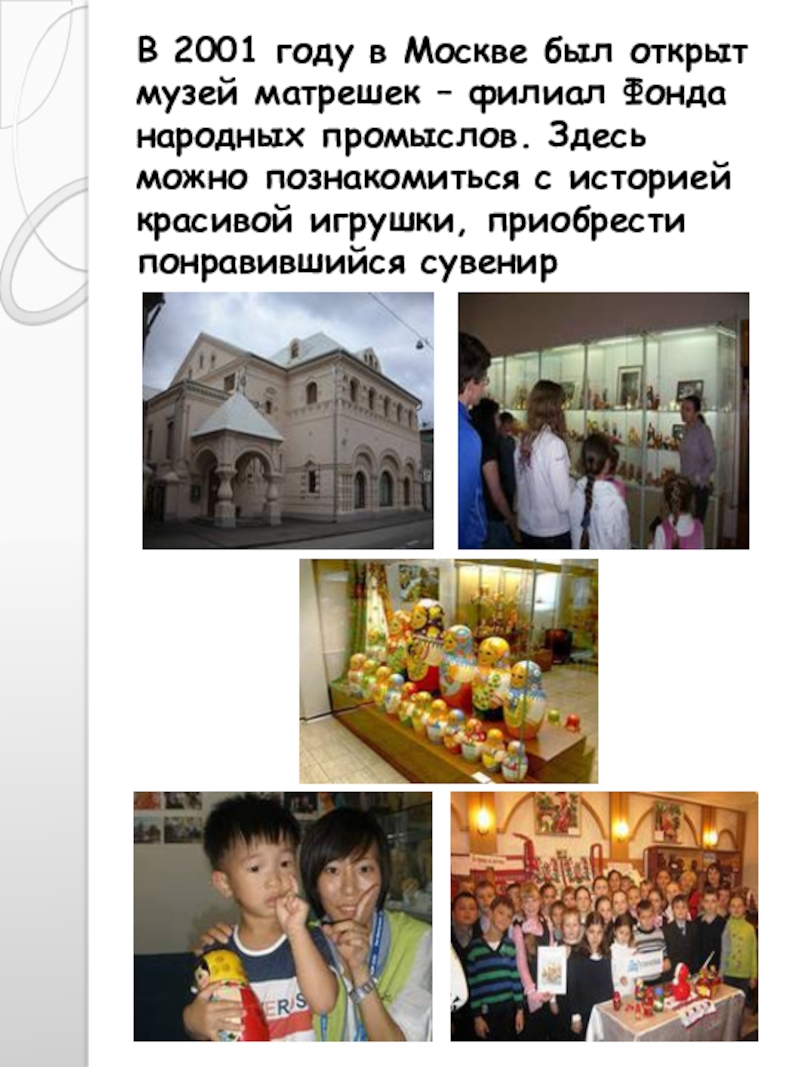 Слайд 18В 2001 году в Москве был открыт музей матрешек – филиал