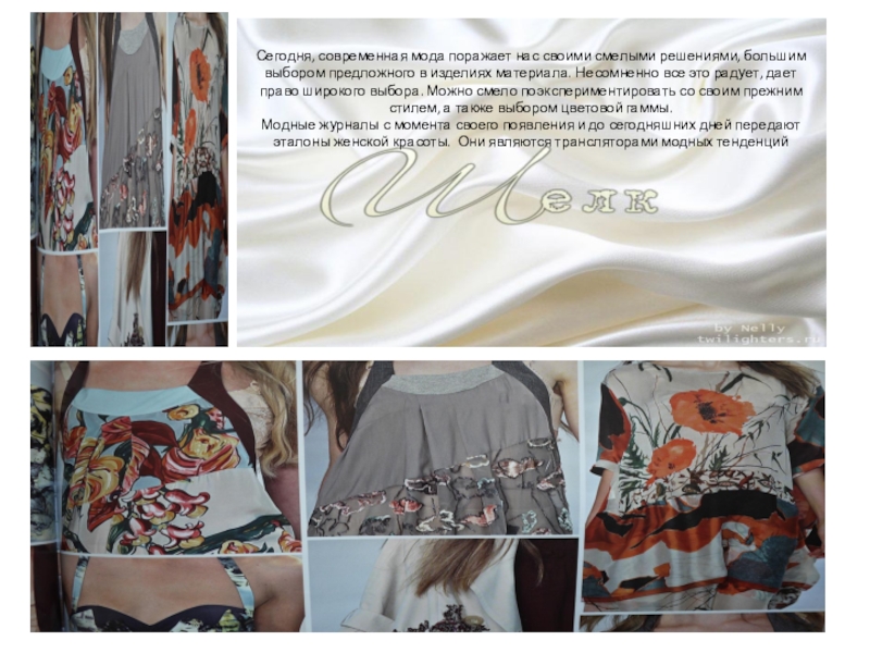 в изделиях материала. Несомненно все это радует, дает право широкого выбора. Можно смело поэкспериментировать со своим прежним стилем, а также выбором цветовой гаммы.