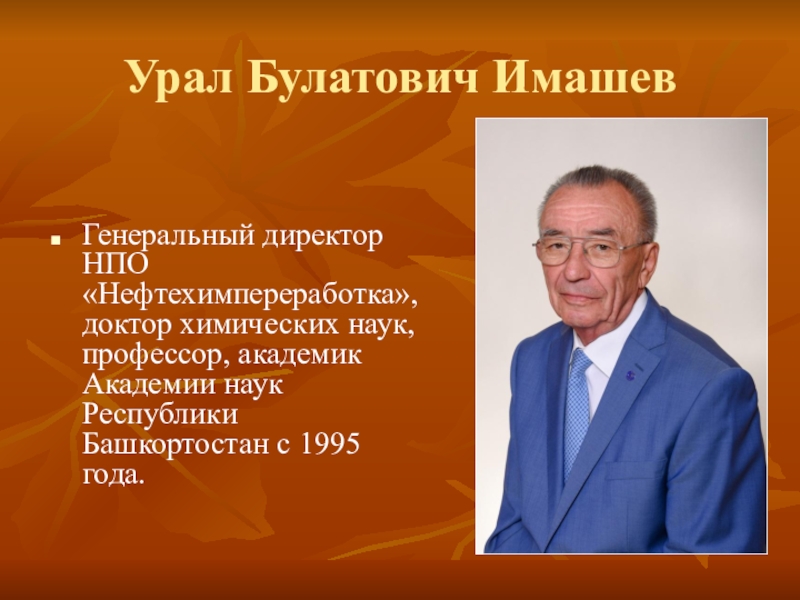 Генеральный директор НПО «Нефтехимпереработка», доктор химических наук, профессор, академик