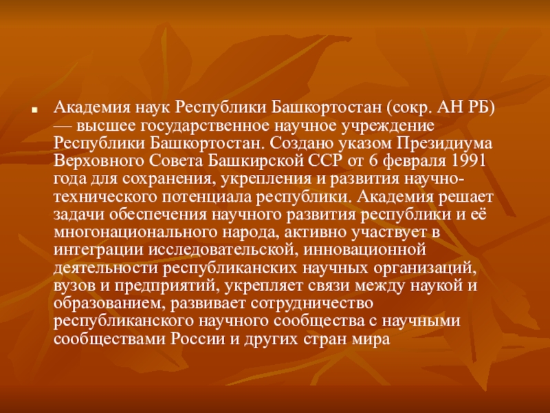 Академия наук Республики Башкортостан (сокр. АН РБ) — высшее государственное научное