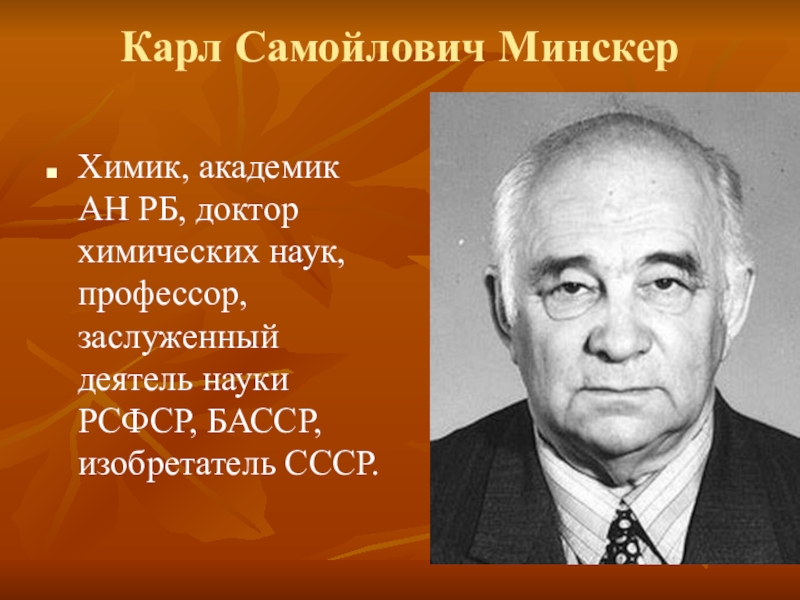 Химик-органик, академик АН РБ, доктор химических наук, профессор, заслуженный