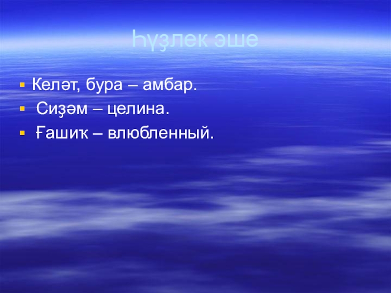 Һүҙлек эшеКеләт, бура – амбар. Сиҙәм – целина. Ғашиҡ – влюбленный.