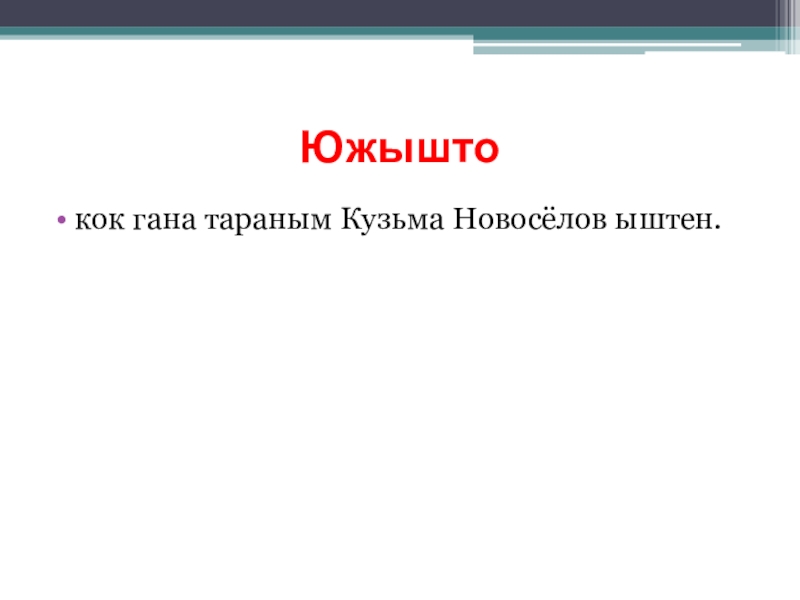 Южыштокок гана тараным Кузьма Новосëлов ыштен.