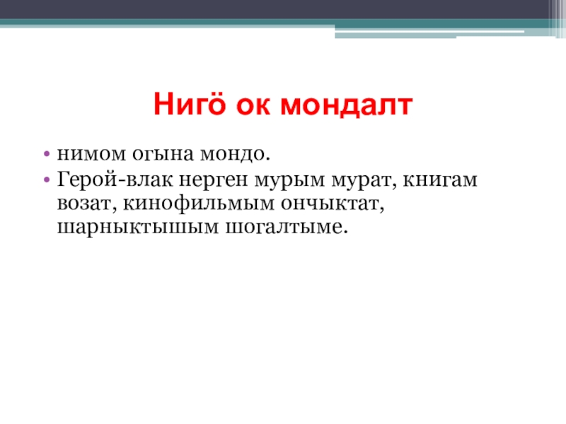 Нигö ок мондалт нимом огына мондо.Герой-влак нерген мурым мурат, книгам возат, кинофильмым ончыктат,шарныктышым шогалтыме.