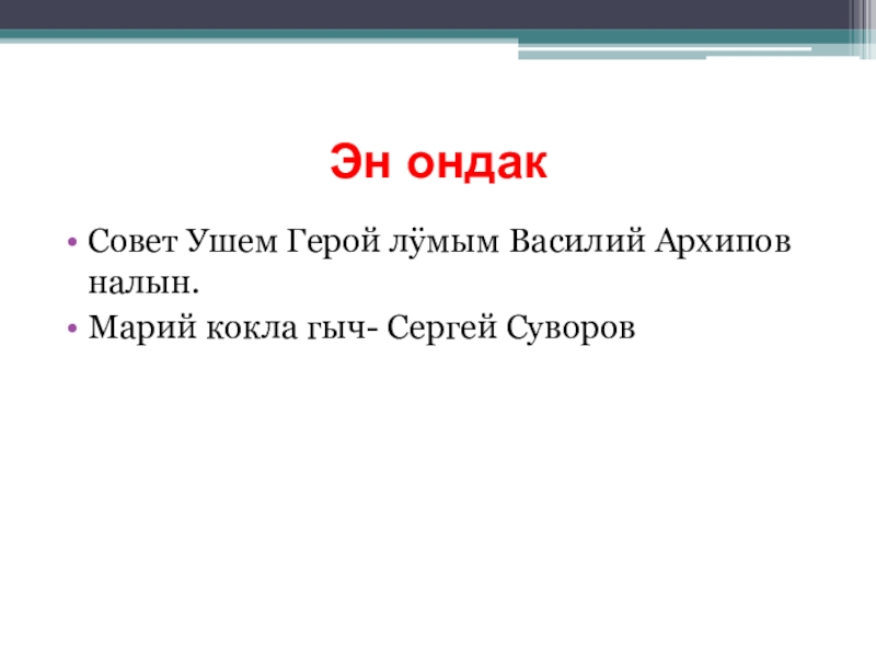 Эн ондакСовет Ушем Герой лÿмым Василий Архипов налын.Марий кокла гыч- Сергей Суворов