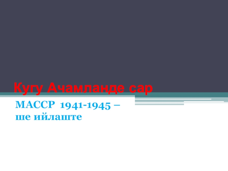 Кугу Ачамланде сарМАССР 1941-1945 –ше ийлаште