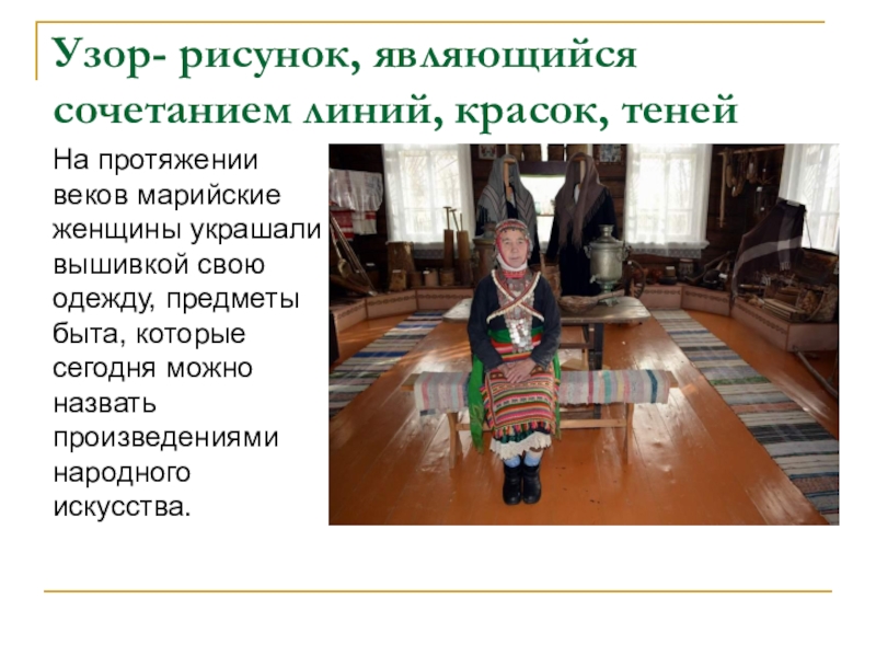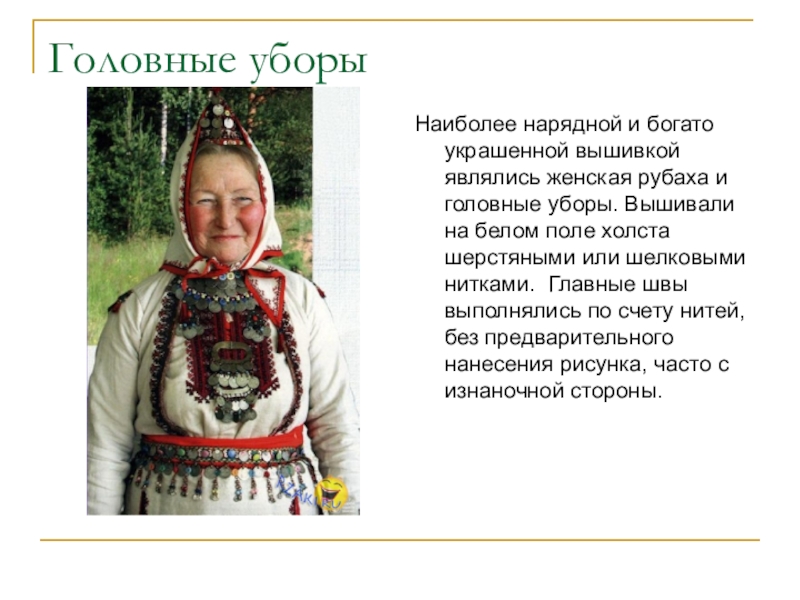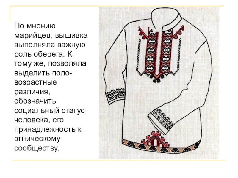 Слайд 11По мнению марийцев, вышивка выполняла важную роль оберега. К тому же,