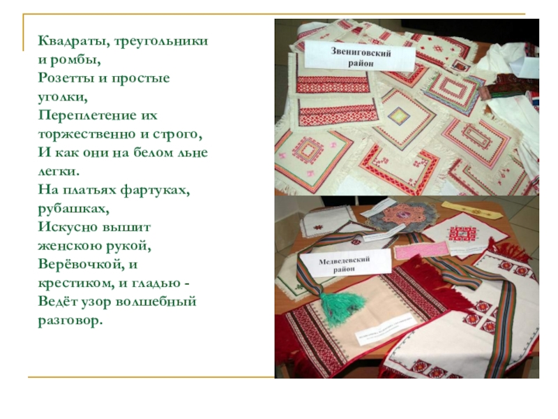 украшали вышивкой свою одежду, предметы быта, которые сегодня можно назвать произведениями народного искусства.