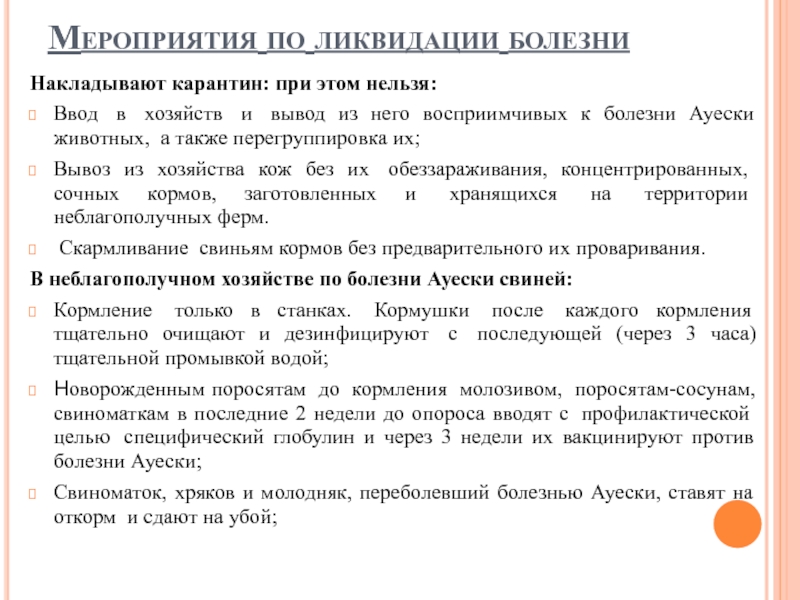 и вывод из него восприимчивых к болезни Ауески животных, а также перегруппировка их;